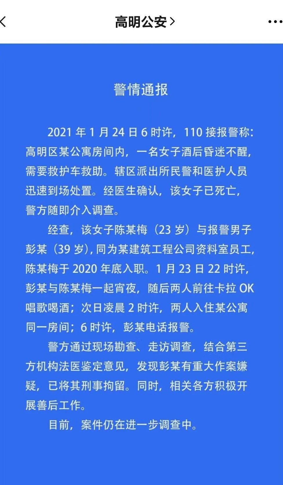 1月23日,敏捷地产公司一位23岁女性职员,在工作聚餐后被公司已婚男领导带去唱歌,喝醉后带到酒店开房。凌晨五点,男性领导去买早餐后叫服务员帮忙开门,十分钟后该男子称房间里的人“不行了”。
