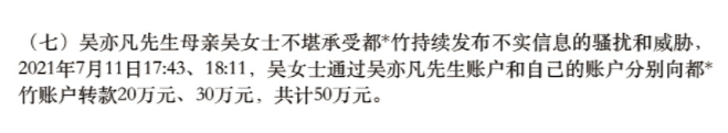 记住,50万,恰好就是吴亦凡母亲打给都美竹的第一笔钱的金额,丝毫不差!